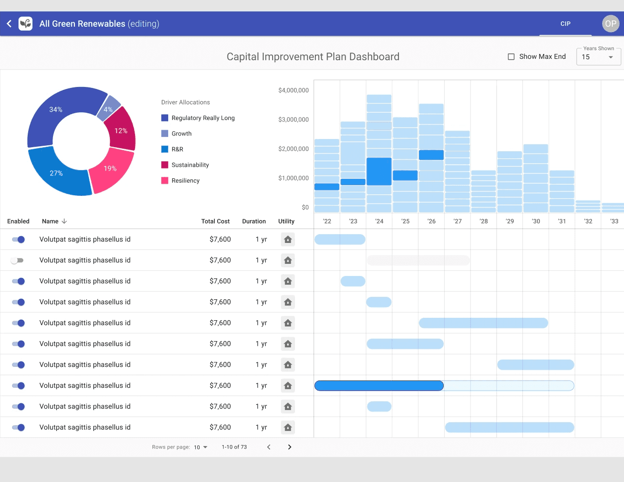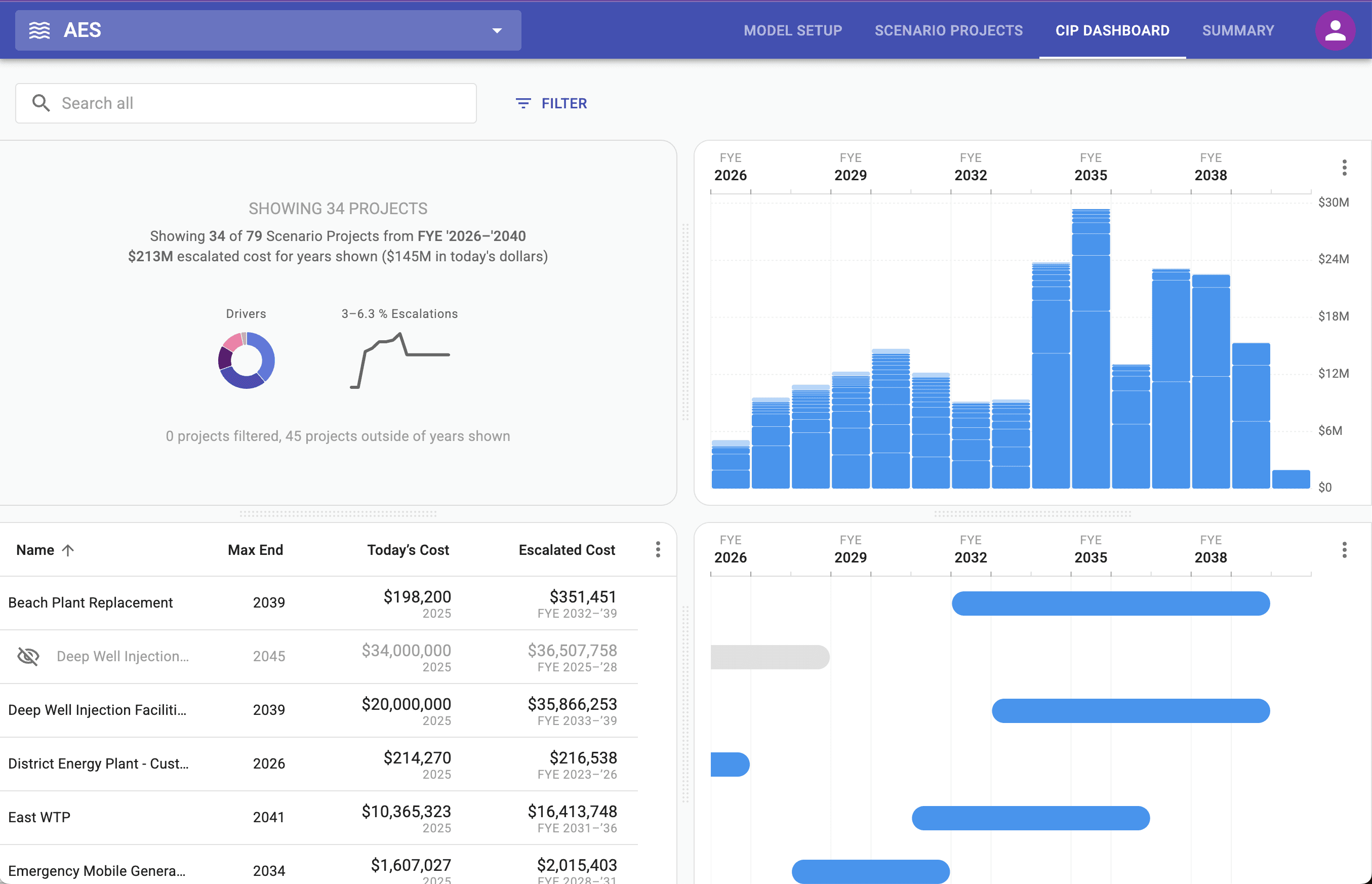 This CIP dashboard was designed to support cross functional teams with a flexible and user friendly interface and to help utilities move from fragmented spreadsheet-based planning to a centralized, collaborative platform.